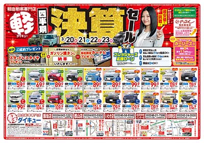 オールメーカー取扱福島市、郡山市、いわき市、白河市、会津若松市でお客様にピッタリな1台をご提案。