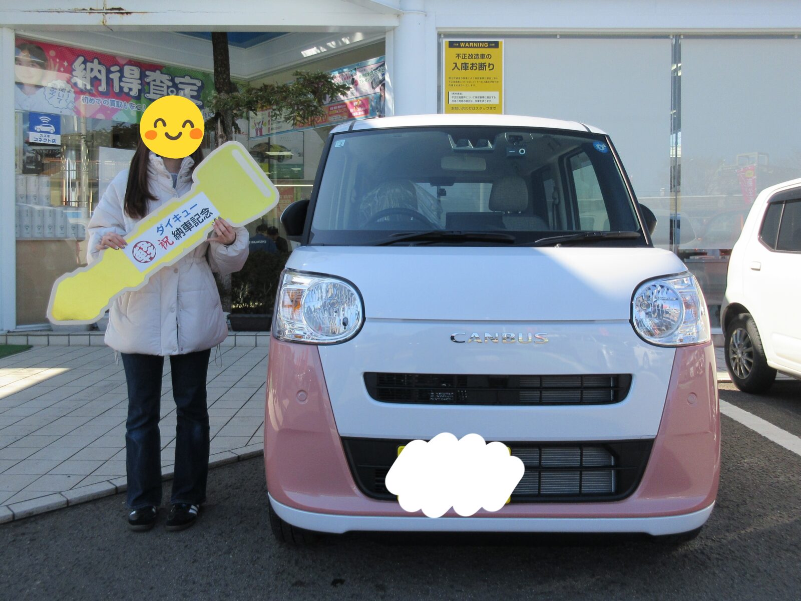 A様、ご来店でのご納車ありがとうございました!とても素敵な笑顔で納車式を迎えていただき、こちらまで温かい気持ちになりました♪またのご来店を心よりお待ちしております!