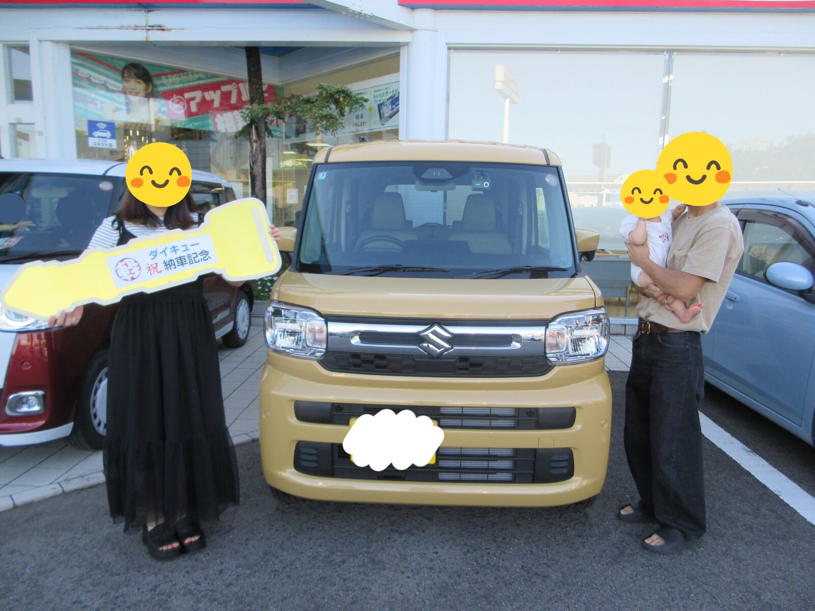 先日、スペーシアをご納車したS様です!ご来店でのご納車ありがとうございました。今後とも、どうぞよろしくお願いいたします!