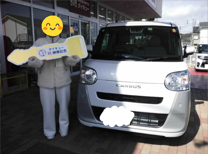 先日、S様にムーヴキャンバスをご納車させていただきました!新しいお車と一緒に、素敵な思い出をたくさん…